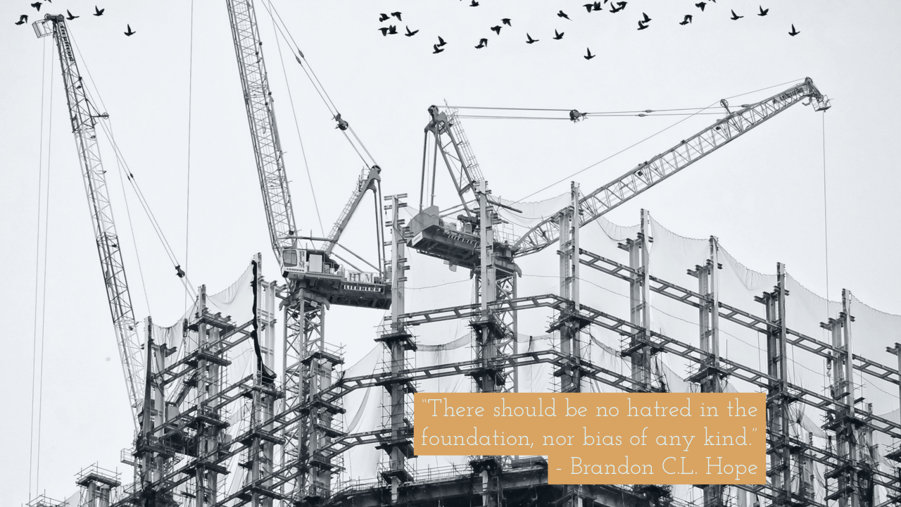 Now, picture the system as a structure like a building. If the system was a building, then the issue that needs to be fixed is deep within the concrete structure, so the only option when there is a structural problem, is to build a new foundation. But to build a new foundation, we must first tear down the building; and the new building can’t be built upon another corrupt foundation. There must be no flaws, or we will have to tear it down again. There should be no hatred in the foundation, nor bias of any kind. We must find a way to utilize love, or at the very least empathy, and build our foundation amongst it.
